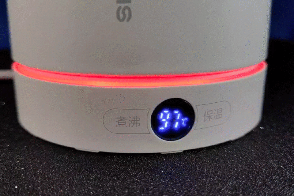 一系列设置之后,就是实际使用了,整个施铂智能恒温电热水壶的使用方法也很常规,接入电源、点击煮沸即可。在整个煮水过程中,施铂智能恒温电热水壶的的底座与壶身接触的地方有一个显色的灯圈,根据水温的变化而变化,颜色由浅变深;刚开始的时候声音略大,在煮沸至80度左右的时候会逐渐变小。