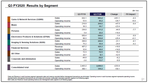 在索尼2020年Q3财报中,其音乐业务(Music)领域第三季度涨势喜人,录得销售收入达2,645亿日元,较去年同期增长22%,营业利润为597亿日元,同比大增234亿日元。主要得益于视觉媒体和平台的销售增加、以《鬼灭之刃:无限列车篇》电影为代表的动漫业务增长、手机游戏业务的优异表现、音乐唱片公司和音乐发行公司的流媒体收入增加。