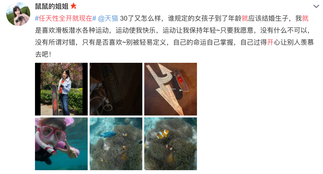 在这样的号召和感染之下,用户被这些具有共鸣感的言论和态度所吸引,自发参与到活动中。再有源源不断的用户被吸引,用文字、视频来表达自己的天性以及所思所想,形成了更加优质的UGC内容,深度触达更多的受众。