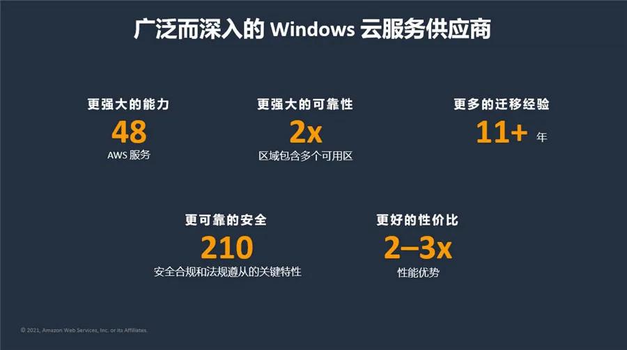 就目前运行在云端的Windows应用而言,亚马逊云科技拥有最高的市场份额。作为全球最早的云服务提供商,亚马逊云科技不仅性能更强,服务更丰富,可靠性更高,多可用区的区域更多,而且帮助企业级客户迁移上云的经验也更丰富。这也是为什么客户更加愿意选择在亚马逊云科技上运行Windows应用的原因。从全球ERP领军企业SAP,到虚拟软件领军企业VMware,都与亚马逊云科技有着大量的合作。