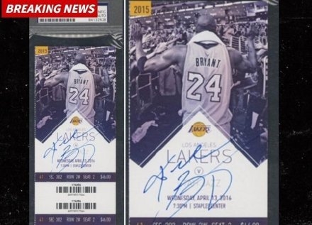 一张门票被拍出了超过26万元的天价,看起来是不是很不可思议,不过一些网友却大呼很值得。据TMZ体育报道,科比职业生涯最后一战的签名球票被拍卖,这张门票的位置不算靠前,但在收到42份竞价后,在戈尔丁拍卖行被坐在拍卖会302区2号位的神秘买家以40590美元的价格收入囊中。