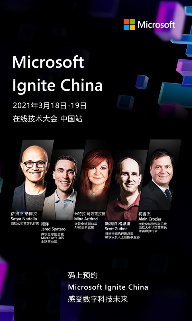 【为中国定制的 Microsoft Ignite China 将于北京时间 3 月 18 日-19 日亮相。大会将以线上直播的形式,围绕云技术、数据智能、未来工作方式、全民创新及数据安全等技术议题,结合全球及本地最新的产品发布、科技趋势与成功案例,欢迎全中国的开发者和 IT 专业人士参加。】
