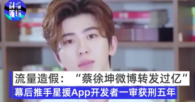 2018 年,「明星蔡徐坤一条微博转发量过亿」事件引发舆论关注。2019 年 6 月,操纵上述微博刷量事件的幕后推手 「星援」App 被查。