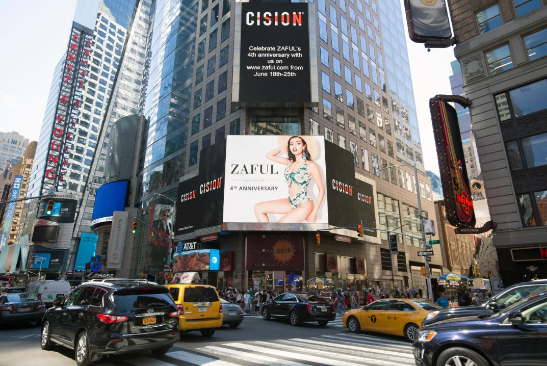 例如在2018年9月,ZAFUL与新锐设计师品牌Victor Wong合作,首次在伦敦时装周上展示了其泳装系列。2020年,ZAFUL携手聚焦新兴设计师与品牌的平台On|Off共同亮相伦敦时装周。而在四周年店庆之际,ZAFUL直接霸屏美国纽约时代广场。并且为庆祝此活动,ZAFUL还找来了加拿大著名演员、模特、作家 Shay Mitchell,并将其身穿ZAFUL衣服在中国旅游、品尝美食的视频发布在了YouTube上。之后,ZAFUL还趁热打铁推出了粉丝抽奖活动和特别款,分别收获10万参与者和3天内产品售罄的战绩。