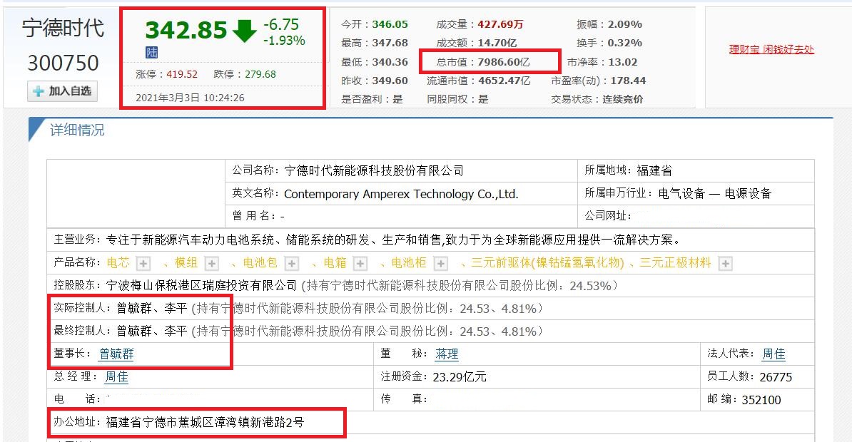 公开资料显示,曾毓群,1968年出生,福建宁德蕉城人,中国香港永久性居民,中科院物理研究所博士。现任宁德时代新能源科技股份有限公司实际控制人、董事长,宁波梅山保税岗区瑞庭投资有限公司执行董事兼总经理。曾任新能源科技有限公司总裁兼CEO、董事,宁德新能源科技有限公司董事长,东莞新能源电子科技有限公司董事长和经理,东莞新能源科技有限公司董事长和经理,东莞新能德科技有限公司执行董事,北京普莱德新能源电池科技有限公司董事,TDK株式会社副总裁、高级副总裁。2020年10月20日,以1200亿元人民币财富名列《2020衡昌烧坊·胡润百富榜》第24位。