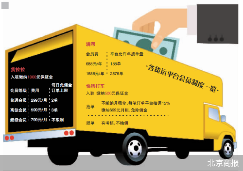 北京商报记者从其他货运平台了解到,事实上各企业均制定了相应的会员收费方案,不过措施有所差异。在满帮平台,据客服介绍,一年会员费分为688元和1688元两种,之间的差异主要是在接单数量上。“688元一年可以接188单,而1688元一年可以接2576单,不过单数达到上限后,是需要续交会费的。”该客服说道。