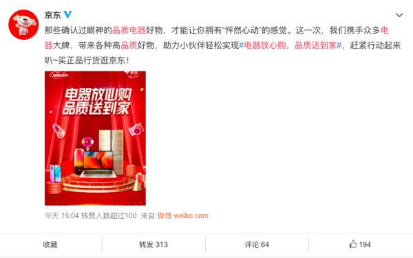 值得一提的是,各大品牌与京东的亲密互撩当然不仅停留在这场热闹的微博互动上,作为大家购买电器产品的首选平台,京东联合品牌在提升国民品质消费方面所做出的努力与成效也是有目共睹。联想、华硕等品牌借助京东C2M模式打造高配硬核电竞装备,为玩家带来更畅爽的游戏体验,海尔针对消费者对数字化的追求,也不断创新推出智能家电,引领品质消费,给老百姓的生活带来了实实在在的便利,赢得网友“叫好又叫座”。