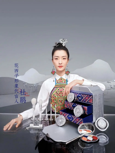 而在品牌代言人上,先后邀请了”四千年美女”鞠婧祎、第一个进入世界模特排行榜前50的国模杜鹃、以及唱过很多古风歌曲的歌手周深作为品牌代言人;2020年6月29日,花西子还推出由周深演唱、方文山作词、陈致逸作曲的品牌同名歌曲《花西子》。