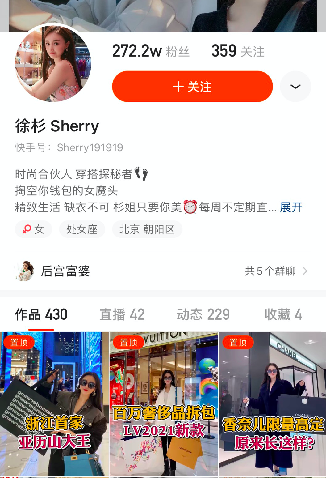 徐彬只卖中高端美妆、服饰、箱包、珠宝产品,整体客单价都很高,服饰保持在3-4千左右,箱包珠宝动辄就要上万。她的目标是,“打造的就是一个线上高端商场,像北京的skp一样。”看起来,徐杉对自己的定位似乎与快手“老铁”的属性格格不入。