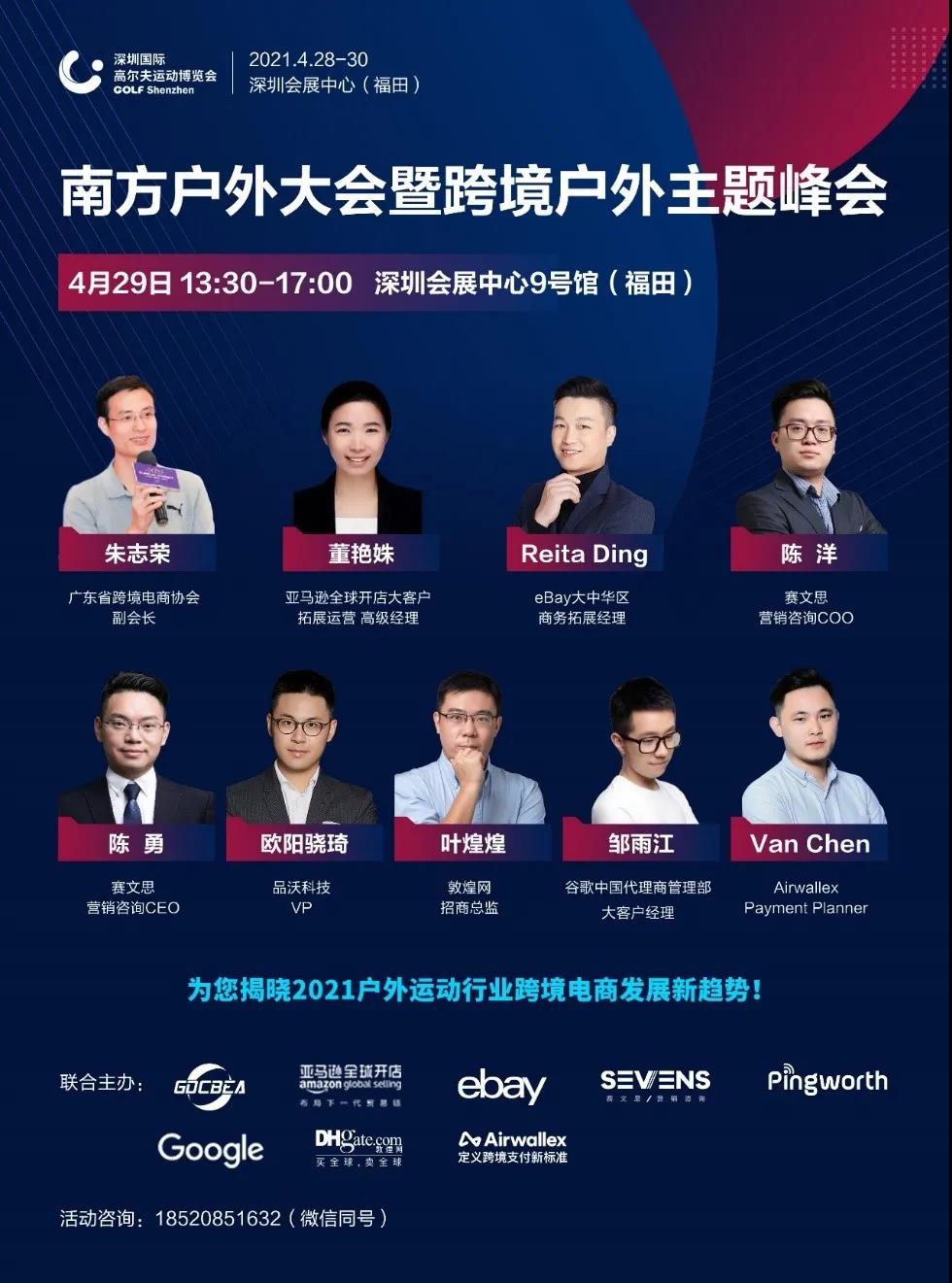 2020年以来,跨境电商成为了推进外贸发展,稳定国际产业供应链的重要纽带。为助力企业更好面对复杂多变的国际商贸局势,2021深圳高博会将邀请亚马逊、eBay、敦煌网三大跨境电商平台负责人,跨境服务商赛文思、airwallex等企业出席跨境电商选品大会。大咖云集,将深刻剖析跨境电商的发展现状与未来机遇,通过梳理平台政策,解答跨境业务配套服务等问题,帮助现场客商更好把握国际市场动向及需求,并将公布各大平台户外运动用品相关数据报告,为合理选品提供全面可靠的市场反馈,推动客商拟定科学营销策略,优化二三季度业务布局,促进产业健康发展。