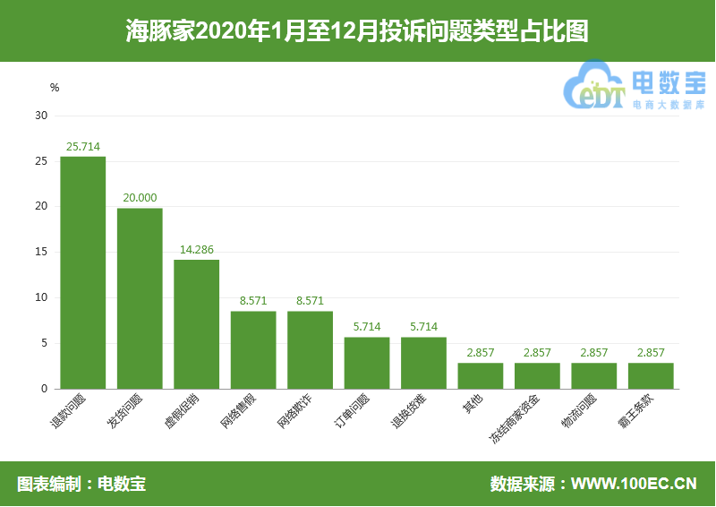 此外,国内知名网络消费纠纷调解平台“电诉宝”受理用户维权案例显示,“海豚家”存在退款问题、发货问题、虚假促销、网络售假、网络欺诈、订单问题、退换货难等问题。