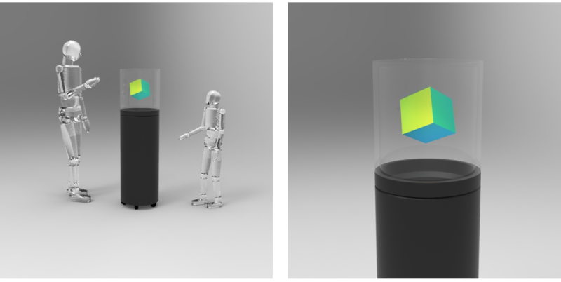 据悉,该3D全息系统外观看起来像是圆柱形透明罩,显示的3D内容就像是实际存在于罩子中,可以从360°查看。此前,日本Gatebox也曾推出圆柱形全息方案,不过理光的方案更加立体,色彩也足够鲜艳。