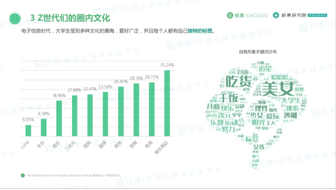 据显示,当代年轻人个性分明,爱好广泛。从兴趣爱好分布来看,他们喜欢音乐、美食、电影、上网、看书、电竞、聚会、旅游。整体上看是一群充满活力、心态乐观、享受人生并积极追求多元生活的年轻人。校果研究院与天猫校园联合发布《2020大学生消费行为调查研究报告》