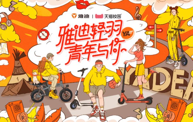 为了与Z世代深度沟通,2020年11月25日,雅迪创办了“YA!青年创意工厂”,发布以“雅迪轻羽·青年与你”为主题的创意作品征集,邀请全国大学生为“轻羽系列-L33”滑板车车身做出创意设计。