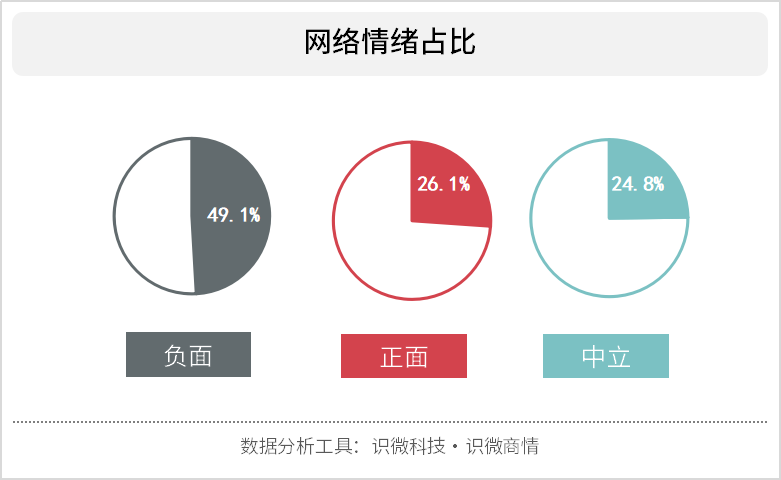 据识微商情系统统计,在此话题下,网络负面情绪以49.1%占据了主要地位,正面及中立情绪分别占26.1%和24.8%。