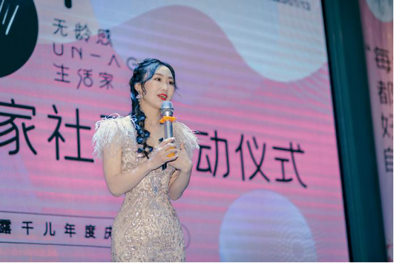 启动仪式开始前,创始人郑元音登台发表讲话,其光彩夺目的造型,时尚优雅的气质,自信从容的步伐,完美诠释了无龄感生活家“年龄成谜,身材无敌”的标准,精彩的发言更是引得台下掌声雷动。