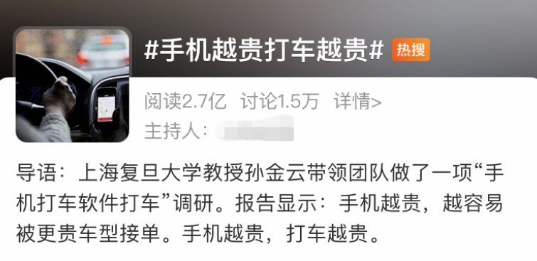 该现象也获得复旦大学孙金云教授的证实,他率团队打车800次,花费近50000元实锤大数据杀熟,并且得出结论,如今杀熟逻辑已被包装得极为精致与巧妙。