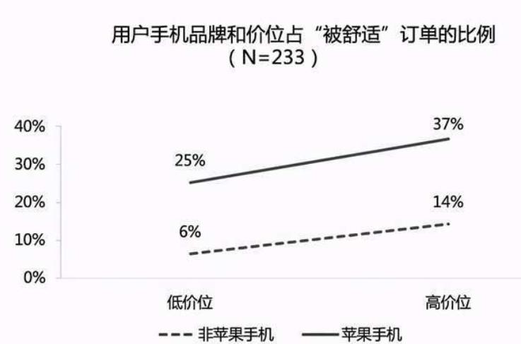 首先,手机用户被分为三六九等,手机价格不同首先接单的车型就不一样,手机越贵的打车,接单来的舒适型车辆可能性就越大。