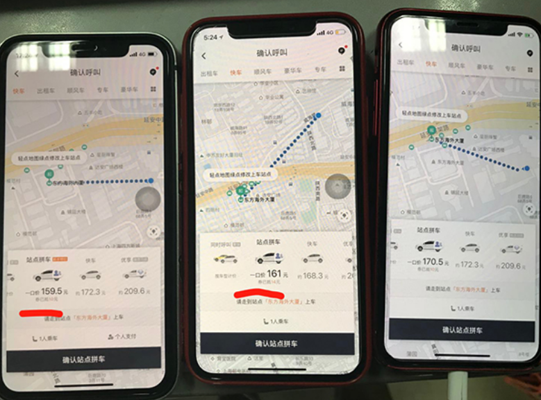 同一时间你用两部不同机型手机同时下单,分别选择同一个目的地,距离相同,路线相同,耗时也相差无几,但订单费用是不同的。