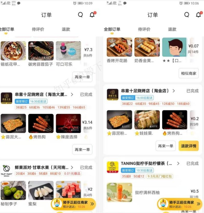 1、叫个外卖,两款手机访问同一家店铺,会几块钱的差价;