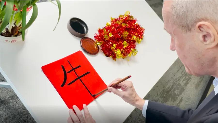 【SAP全球执行副总裁、大中华区总裁纪秉盟(Mark Gibbs)挥笔书写“牛”字】