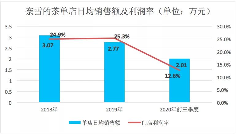 2018年、2019年、2020年前三季度,奈雪的茶门店数量为155家、327家和422家(2019年新增172家,2020年前三季度新增95家),单店日均销售额为3.07万元、2.77万元、2.01万元,客户订单量为2120万、5320万、4590万,门店利润率为24.9%、25.3%、12.6%。