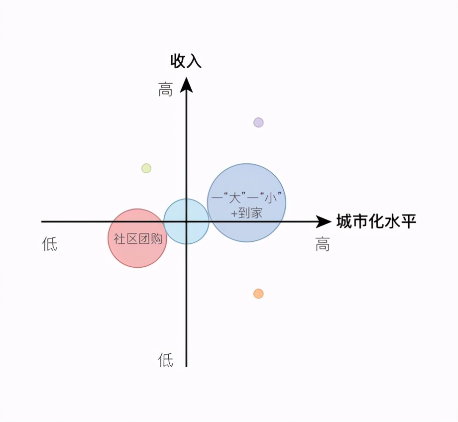 图中可以看到,从区域角度,社区团购可以满足下沉市场收入较低人群的需求。预售+自提模式牺牲便利性,有非常强的价格优势。