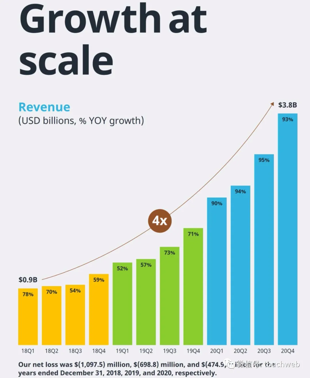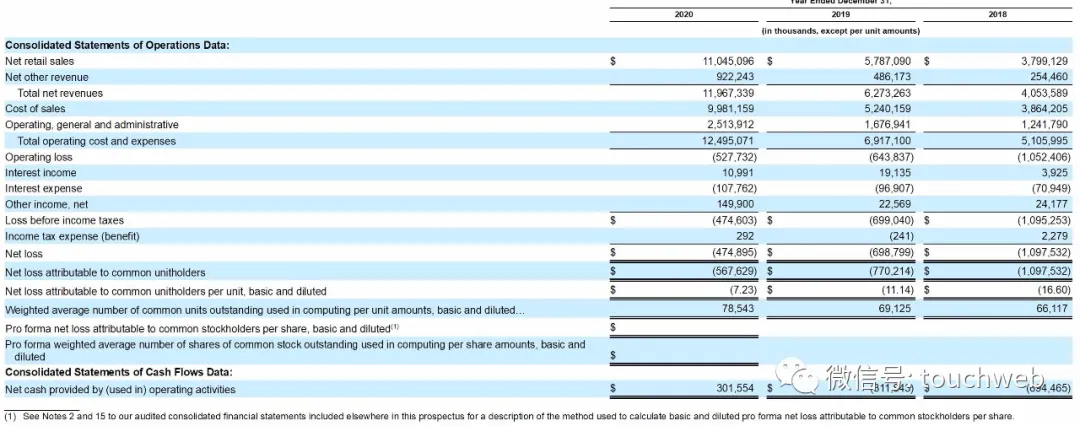 Coupang在2018年、2019年、2020年净亏损分别为10.97亿美元、7亿美元、4.75亿美元。