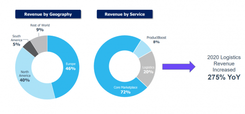 各业务表现上,2020年全年Wish核心市场营收18.27亿美元,同比增长24%,从市场区域看,欧洲市场收入占比46%,北美市场占比40%;ProductBoost营销工具营收2亿美元,2020年大流行造成的不确定性使许多商家缩减了广告预算,ProductBoost收入同比下降31%,但是,在第四季度,我们看到商家正加速恢复广告支出,环比Q3季度增长了27%;物流业务开始实现规模经济,全年物流营收达到5.14亿美元,同比增长275%。