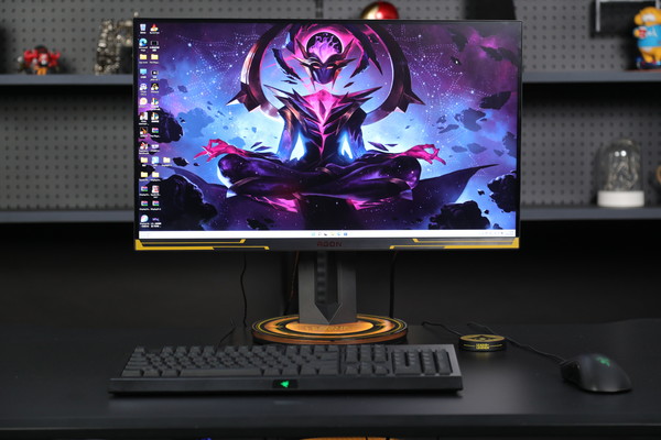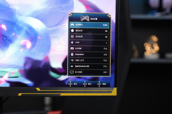 爱攻AG275QXL不仅在外观设计上采用了大量《英雄联盟》游戏里的元素,同时在交互体验上也进行了深度适配。