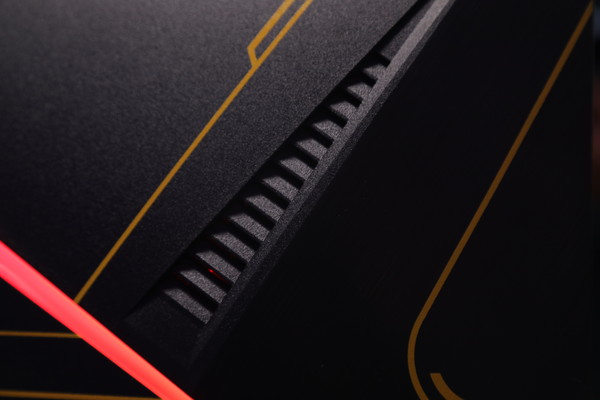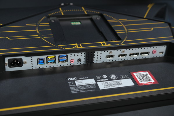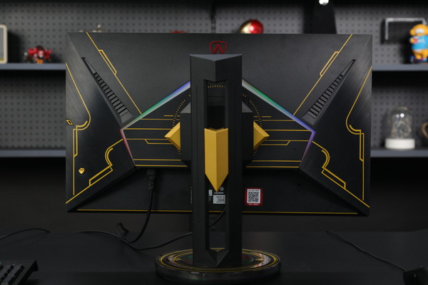 在显示器背面同样将海克斯科技元素贯穿到底。大面积的对称式海克斯科技纹路,同时还带有LightFX电竞氛围灯,十分炫酷。显示器的后壳、按键、支架饰片均采用了注塑喷漆工艺,经典黑配色搭配金色纹路让显示器的设计感爆棚。加上电竞红镀铬效果的AGON盾牌LOGO点缀其中,让炫酷的视觉效果又多了几分灵动气息。
