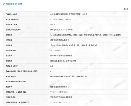 事情很简单。近日,北京奈雪餐饮管理有限公司天津和平区第一分公司因经营超过保质期的食品被天津市和平区市场监督管理局处罚款5000元。处罚内容还包括没收已超过保质期的1瓶已开封的“光明”新鲜牧场高温杀菌乳。