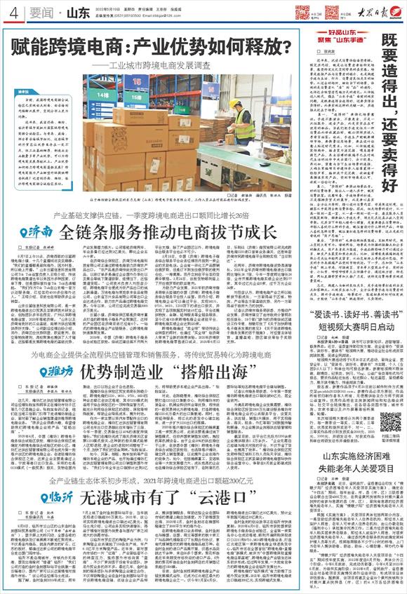 跨境电商的“临沂模式”有力助推了当地外贸业发展。2021年,临沂市跨境电商进出口额超200亿元,实现跨越式发展。