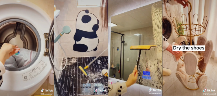 中国消费者熟悉的小家电和家居产品,在情景短剧中展现出最实用的一面。《亚洲女人如何清洁浴室》、《亚洲女人下班回家后做什么》……视频中描绘的家庭布置满各类智能家电、家居用品,没有背景音乐,使用洗衣机、擦地、收纳物品等操作的声音都被收入视频中,宛如ASMR。