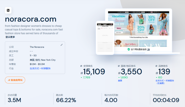 曾经的站群大卖细刻据传已主动关停大量独立站。在快时尚赛道,这家公司成功孵化出以NORACORA、JUSTFASHIONNOW、STYLEWE为代表的头部独立站。据similarweb网站提供的数据,三个站点的流量状况良好。